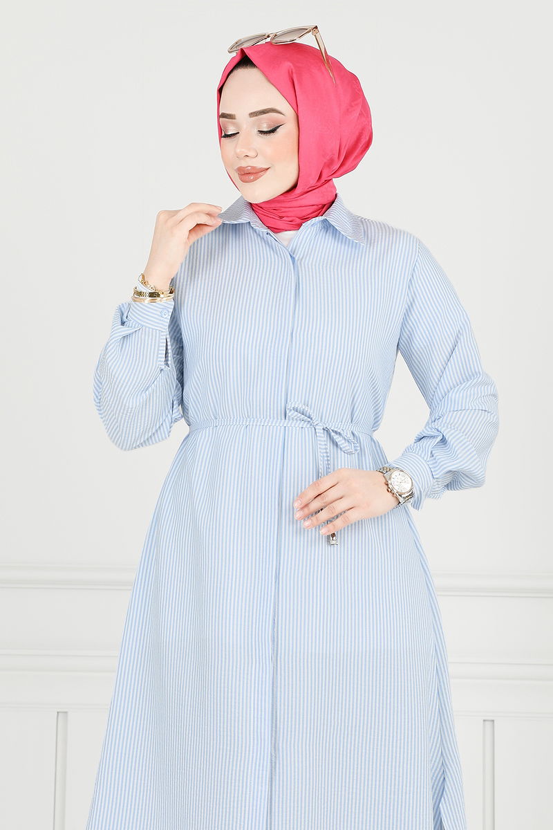 Şıklığı ve rahatlığı bir arada sunan Beli Bağcıklı Çizgili Tunik, dört mevsim rahatlıkla kullanılabilir. Hassas yapıdaki çizgili kumaşı sayesinde kullanımı idealdir. Gömlek yaka ve gizli düğmeli tasarımı ile modern bir görünüme sahiptir. Yandan yırtmaç detayları tuniğe dinamik bir hava katarken, astarsız yapısı ile maksimum konfor sunar. Ürüne dahil olan kemer, isteğe bağlı kullanılabilir. Bu tunik, hem günlük kullanım hem de özel günleriniz için idealdir.