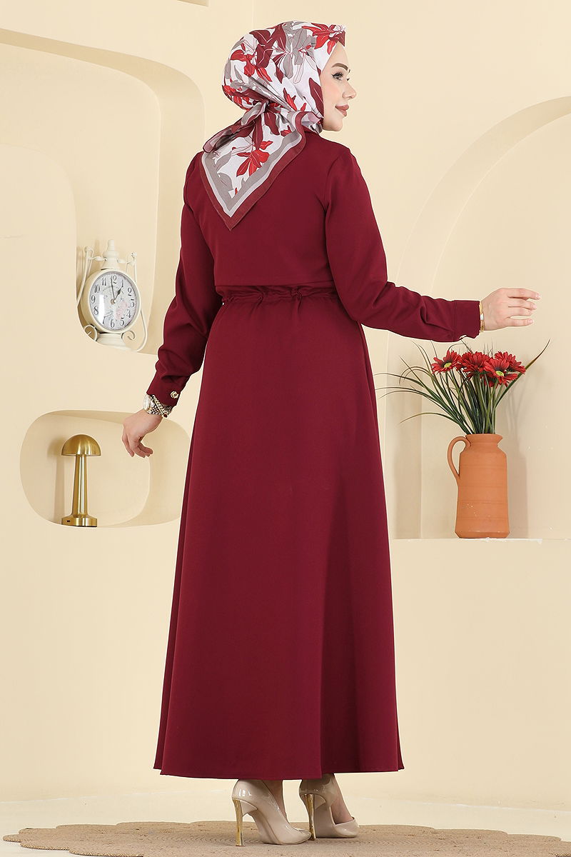 Beli Bağcıklı Dabıl Elbise 3327BLU797 Bordo