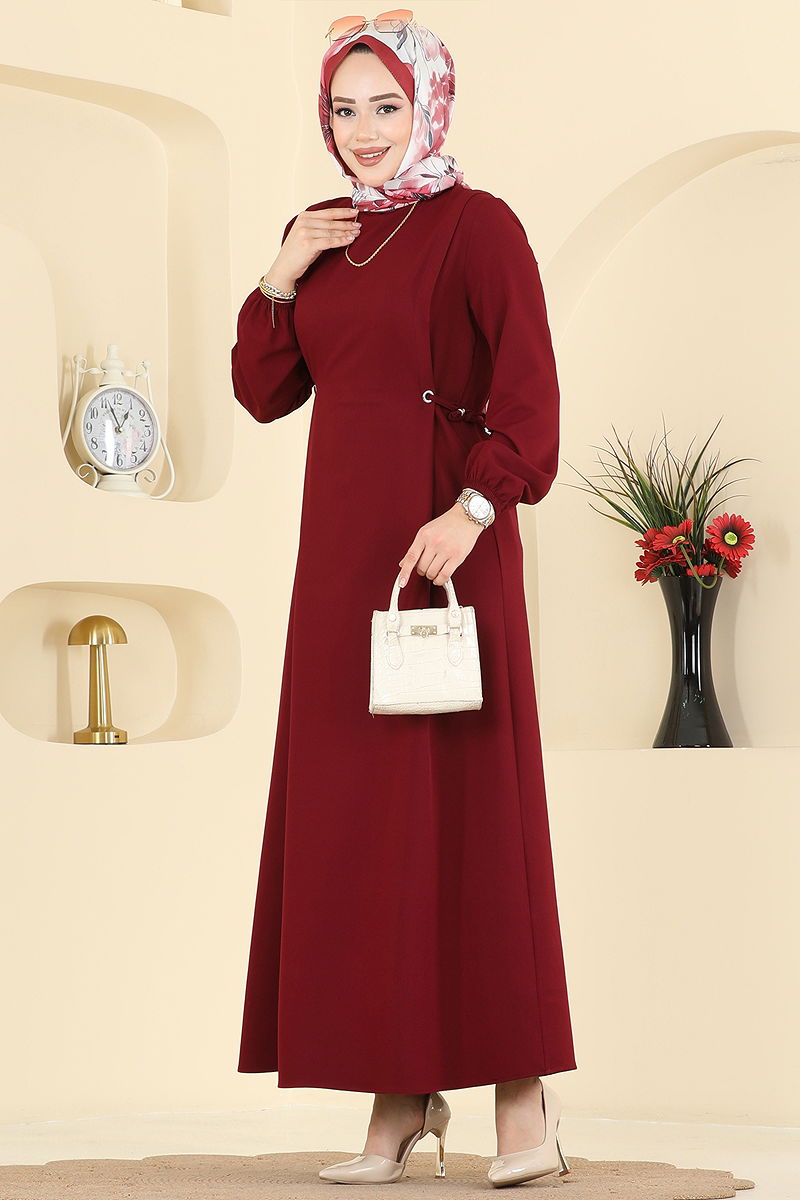 Beli Bağcıklı Dabıl Elbise, özel günlerinizde şıklığı yakalamak için tasarlanmıştır. Dört mevsim boyunca keyifle giyebileceğiniz bu elbise, dabıl kumaştan üretilmiş olup, sıcak günlerde bile rahat ettirecek şekilde nefes alabilir bir yapıya sahiptir. Hassas yıkama özelliği sayesinde uzun ömürlü kullanım sunar. Bisiklet yaka tasarımı ve astarsız yapısı ile konforu ön planda tutar. Beli bağcıklı tasarımı sayesinde farklı vücut tiplerine uyum sağlar ve şık bir görünüm kazandırır. Beli ve manşetleri lastikli olduğundan, hem şık hem de pratik bir kullanım vaat eder.