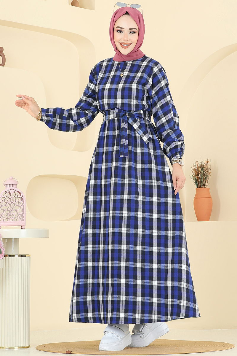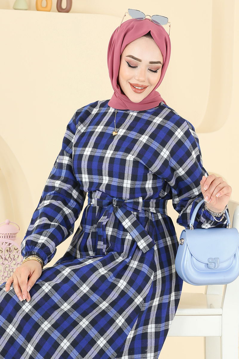 Beli Bağcıklı Ekose Elbise, tesettür modasına uygun olarak tasarlanmıştır. Sonbahar ve Kış ayları için ideal olan bu elbise, 30 derecede hassas yıkama ile temizlenebilir. Ekose desenli kumaştan üretilmiş olup, astarsız ve bisiklet yakalı bir yapıya sahiptir. Ürün elastik bir bele sahip olup bağcıklı tasarımı sayesinde zarif bir görünüm sunar. Bağcık isteğe bağlı olarak kullanılabilir ve manşetler elastik olarak dizayn edilmiştir. Modelin üzerindeki ürün 38 bedendir.