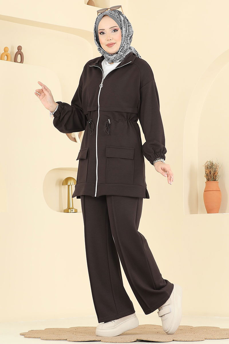 Ürün Özelliği : Yeni sezon tesettür moda ürünüdür. Beli bağcıklıdır. Ürün Yarım Hakim yakadır. Astarsızdır. Ürün Önden fermuarlıdır. Cep mevcuttur. Pantolon beli lastiklidir. Manşet lastiklidir.Konsept fotoğraf çekimlerinden dolayı üründe ton farklılığı olabilir.