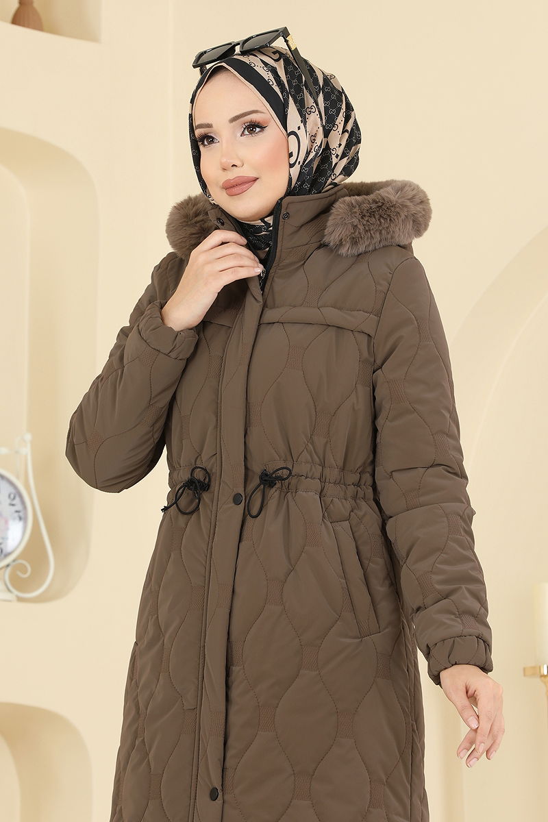 Ürün Özelliği : Yeni sezon tesettür moda ürünüdür. Beli bağcıklıdır. Kapüşon seyyardır, isteğe bağlı kullanılmayabilir. Ürün Kapşonlu yakadır. Astarlıdır. Ürün Önden fermuarlıdır. Kapşon kürkü ürüne dikilidir. Cep mevcuttur. Manşet lastiklidir.Konsept fotoğraf çekimlerinden dolayı üründe ton farklılığı olabilir.