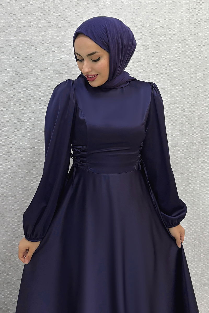 Şıklığı ve konforu bir araya getiren 'Beli Bağcıklı Saten Abiye', dört mevsim boyunca tercih edebileceğiniz mükemmel bir tesettür abiye modelidir. Saten kumaşın zarif dokunuşu ile tasarlanmış olan bu elbise, bisiklet yaka ve sırttan fermuarlı yapısıyla modern bir görünüme sahiptir. Ürün astarsızdır ve beli bağcıklı dikiş detayları ile feminin bir siluet sunar. Manşeti lastikli olan bu abiye, sadece kuru temizleme ile temizlenmelidir. Kendinizi özel hissetmek için ideal bir seçim!