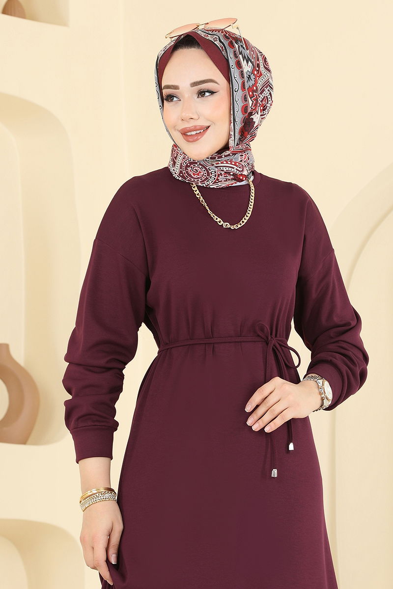 Bu şık ve pratik Beli Bağcıklı Spor Elbise, dört mevsim rahatlıkla kullanılabilir. 30 derecede hassas yıkama programında yıkanabilen bu tesettür elbise, modal kumaştan üretilmiştir ve nefes alabilir yapısı sayesinde gün boyu konfor sağlar. Bisiklet yakası ve astarsız tasarımı ile modern bir görünüm sunar. Elbisenin kafadan giyilme özelliği ve ayarlanabilir bel bandı sayesinde istediğiniz fiti kolayca sağlayabilirsiniz. Ürüne dahil olan kemer, isteğe bağlı olarak kullanılabilir veya çıkarılabilir. Bu çok yönlü elbise, her gardıropta olması gereken temel parçalardan biridir.