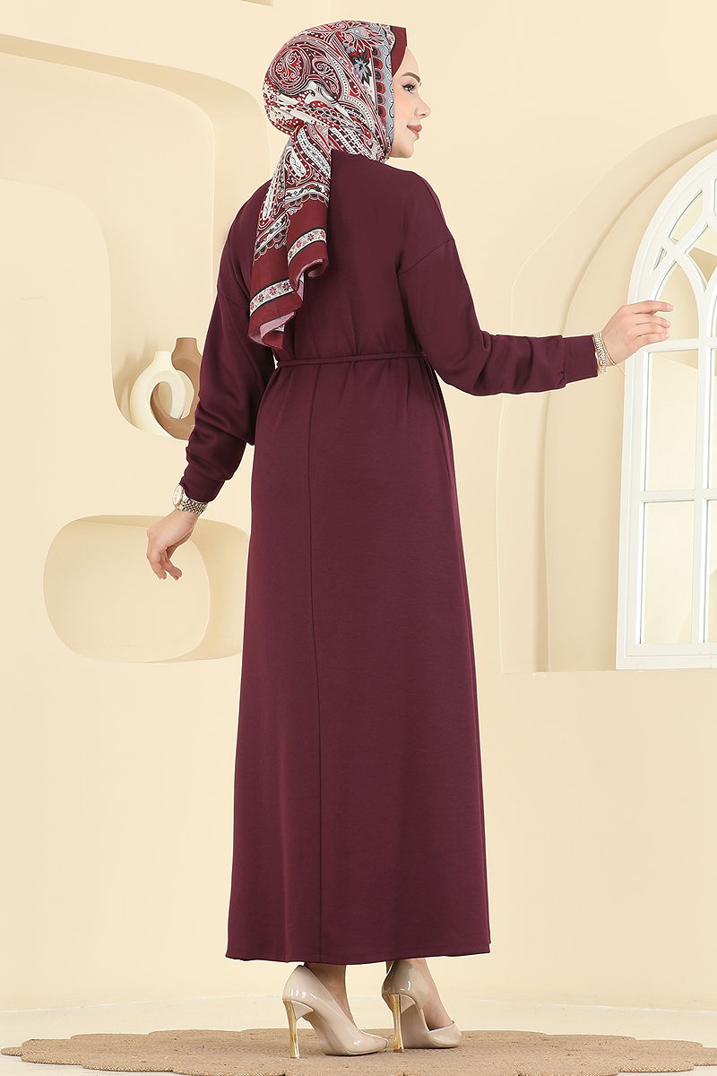 Beli Bağcıklı Spor Elbise Bordo