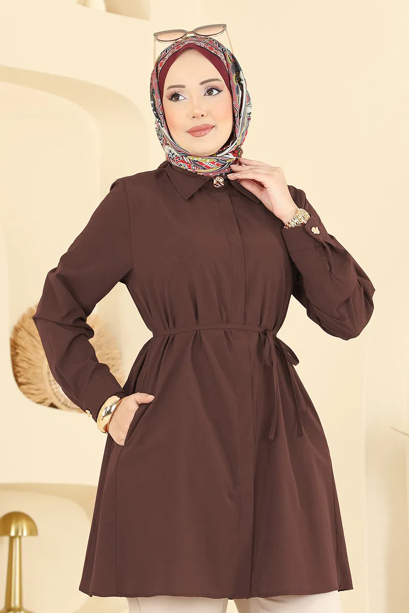 Beli Bağcıklı Terikoton Gömlek 3077KTR750 Açık Kahve