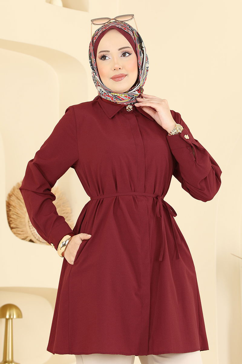 Beli Bağcıklı Terikoton Gömlek Bordo
