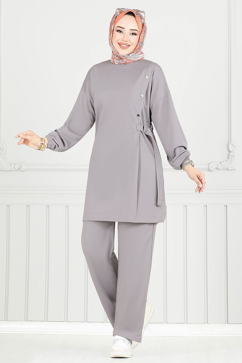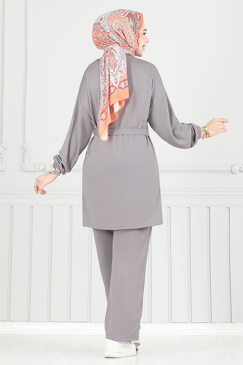 Ürün Özelliği : Yeni sezon tesettür moda ürünüdür. Yandan bağlanabilir kemeri bulunmaktadır. Ürün Bisiklet yakadır. Astarsızdır. Kemer Ürüne Dikilidir. Düğmeler aksesuardır. Pantolon beli lastiklidir. Manşet lastiklidir. Konsept fotoğraf çekimlerinden dolayı üründe ton farklılığı olabilir.