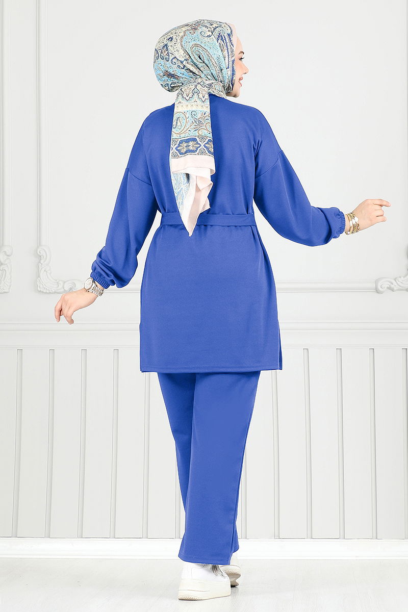 Beli Bağcıklı Tesettür Takım Saks