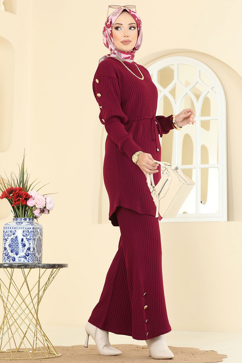 Beli Bağcıklı Triko Takım 2746AYD574 Bordo