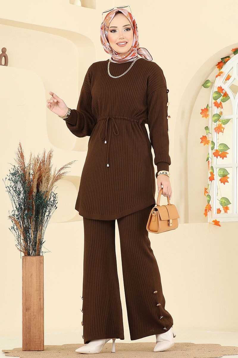 Beli Bağcıklı Triko Takım Kahve