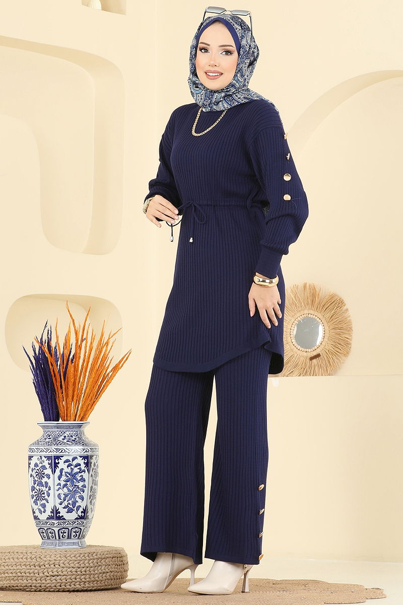 Beli Bağcıklı Triko Takım, KOMBİN modeli ile tesettür giyimde yeni bir stil sunuyor. Sonbahar ve kış aylarında rahatlıkla tercih edebileceğiniz bu ürün, 30 derecede hassas yıkama imkanı sunarak kullanım kolaylığı sağlar. Triko kumaşın sıcak tutan yapısı ve bisiklet yakası, şıklığı konforla buluşturur. Beli bağcıklı tasarımı ve lastikli pantolon beli ile mükemmel bir uyum sunar. Tunik ve pantolon olarak set halinde sunulan bu ürün, 36-38-40-42 beden seçenekleri ile geniş bir kullanıcı kitlesine hitap eder.