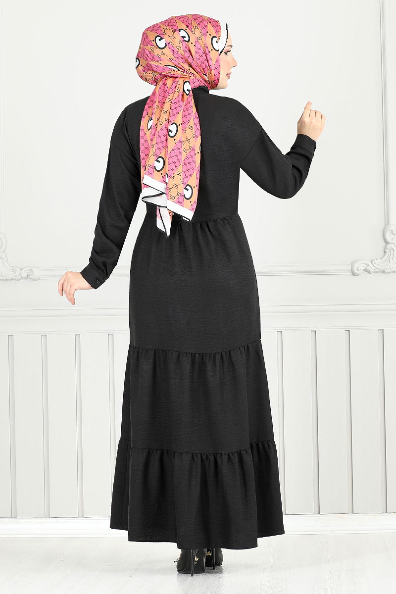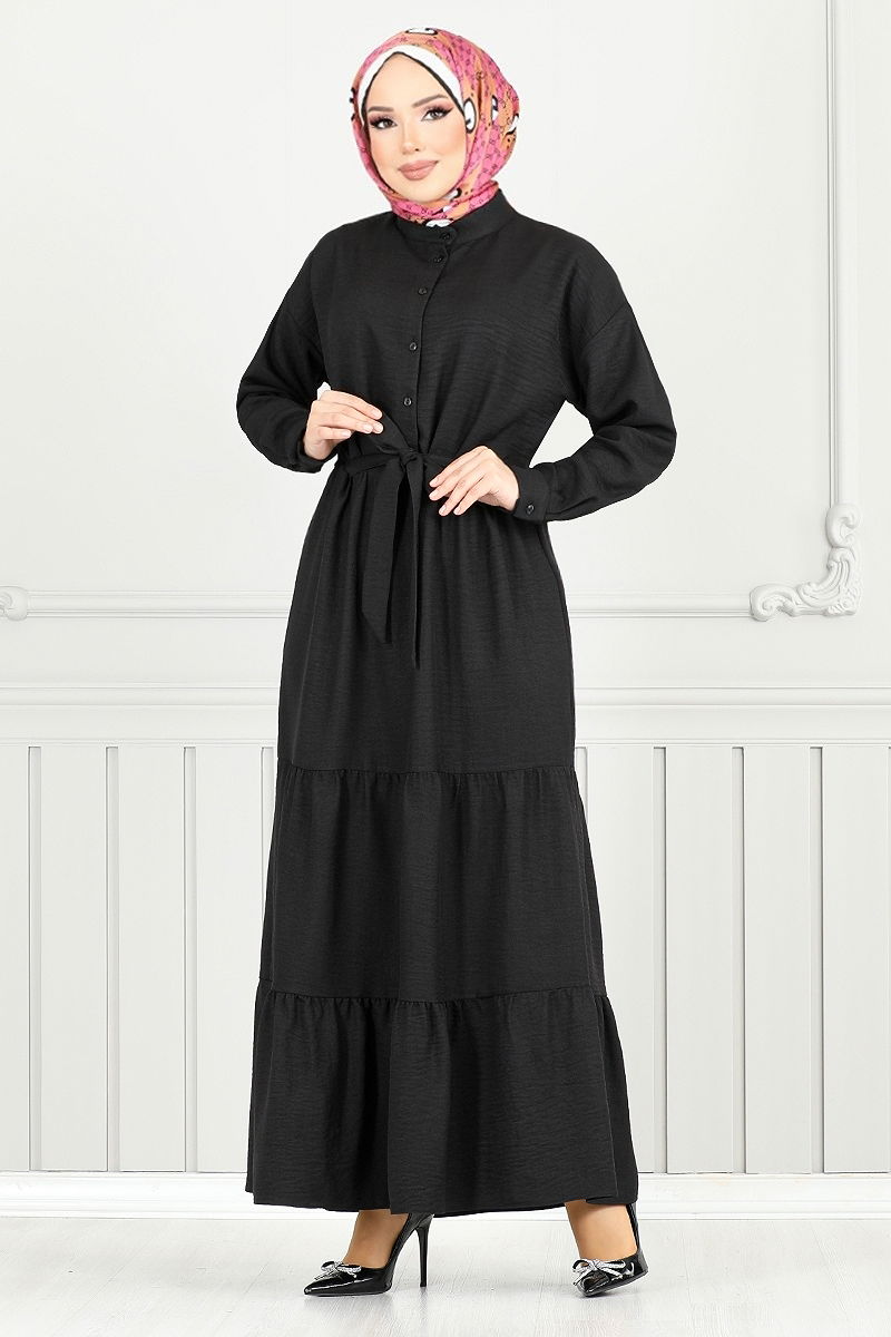 Beli Bağlamalı Elbise, model tesettür ürünüdür ve dört mevsim boyunca rahatlıkla kullanılabilir. Hassas elbiselerinize özen gösterir gibi bu ürünü de 30 derecede ve sıkma işlemi uygulamadan yıkayabilirsiniz. Sofia Keten kumaş kullanılarak imal edilen bu zarif elbise, hakim yakası ve yarım düğmeli önü ile gündelik ve özel günlerinizde şıklığınızı tamamlayacak. Astarsız olan bu model, üzerinde dikili kemeri ile modern bir siluet sunar. Modelin üzerindeki ürün 38 bedendir.