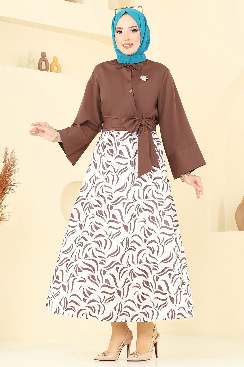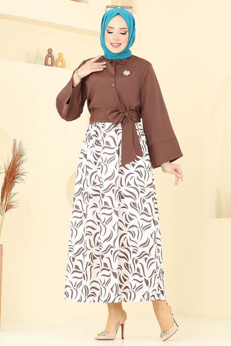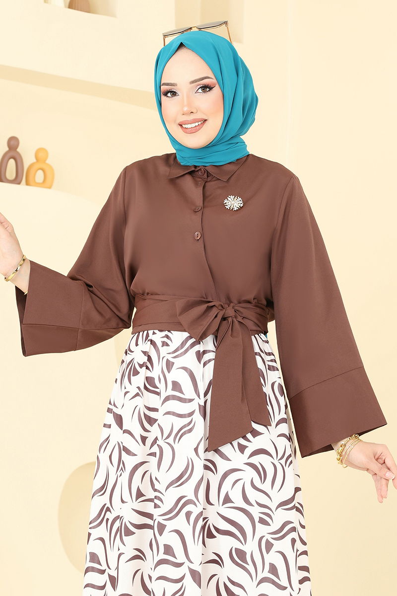 Beli Bağlamalı Etekli Takım 262ASN888 Kahve