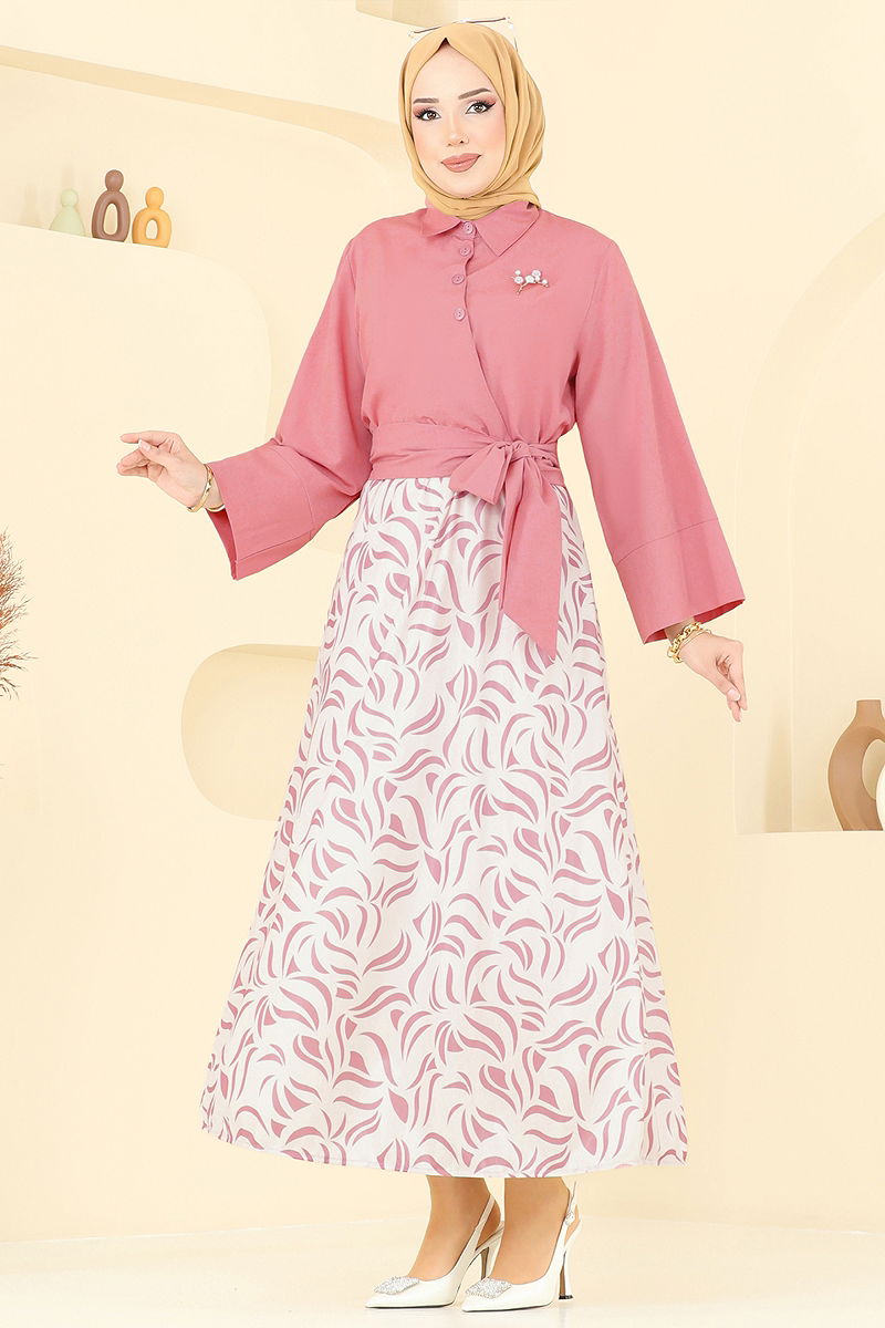 Ürün Özelliği : Yeni sezon tesettür moda ürünüdür. Yandan bağlanabilir kemeri bulunmaktadır. Ürün Gömlek yakadır. Ürün Önden düğmelidir. Astarsızdır. Kemer Ürüne Dikilidir. Aksesuarlar ürüne dahil değildir. Etek beli lastiklidir. Konsept fotoğraf çekimlerinden dolayı üründe ton farklılığı olabilir.