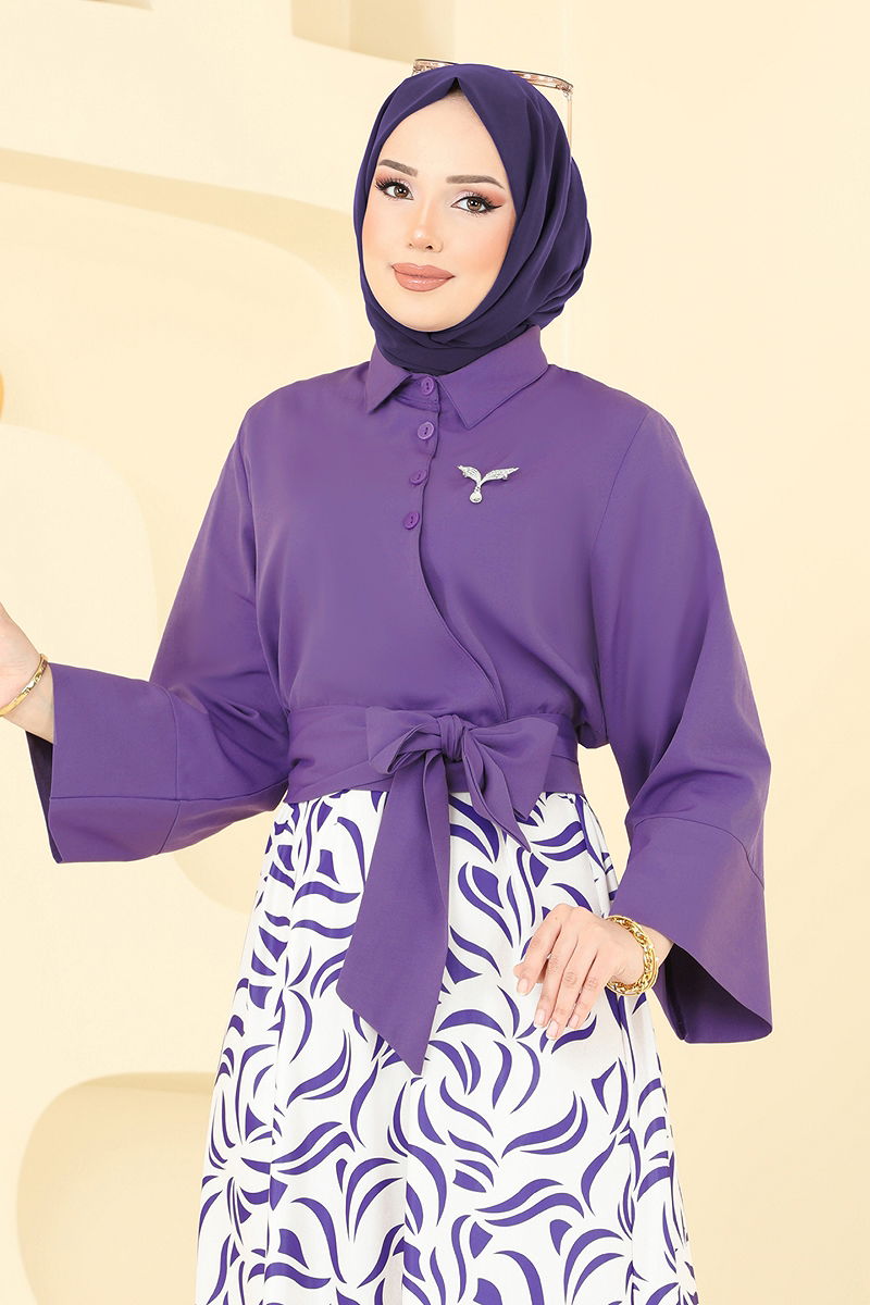 Beli Bağlamalı Etekli Takım Mor