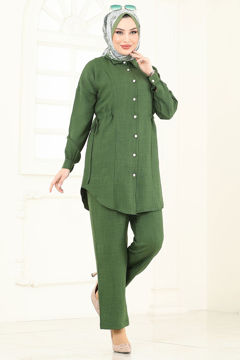 Beli Bağlamalı Tesettür Takım Haki