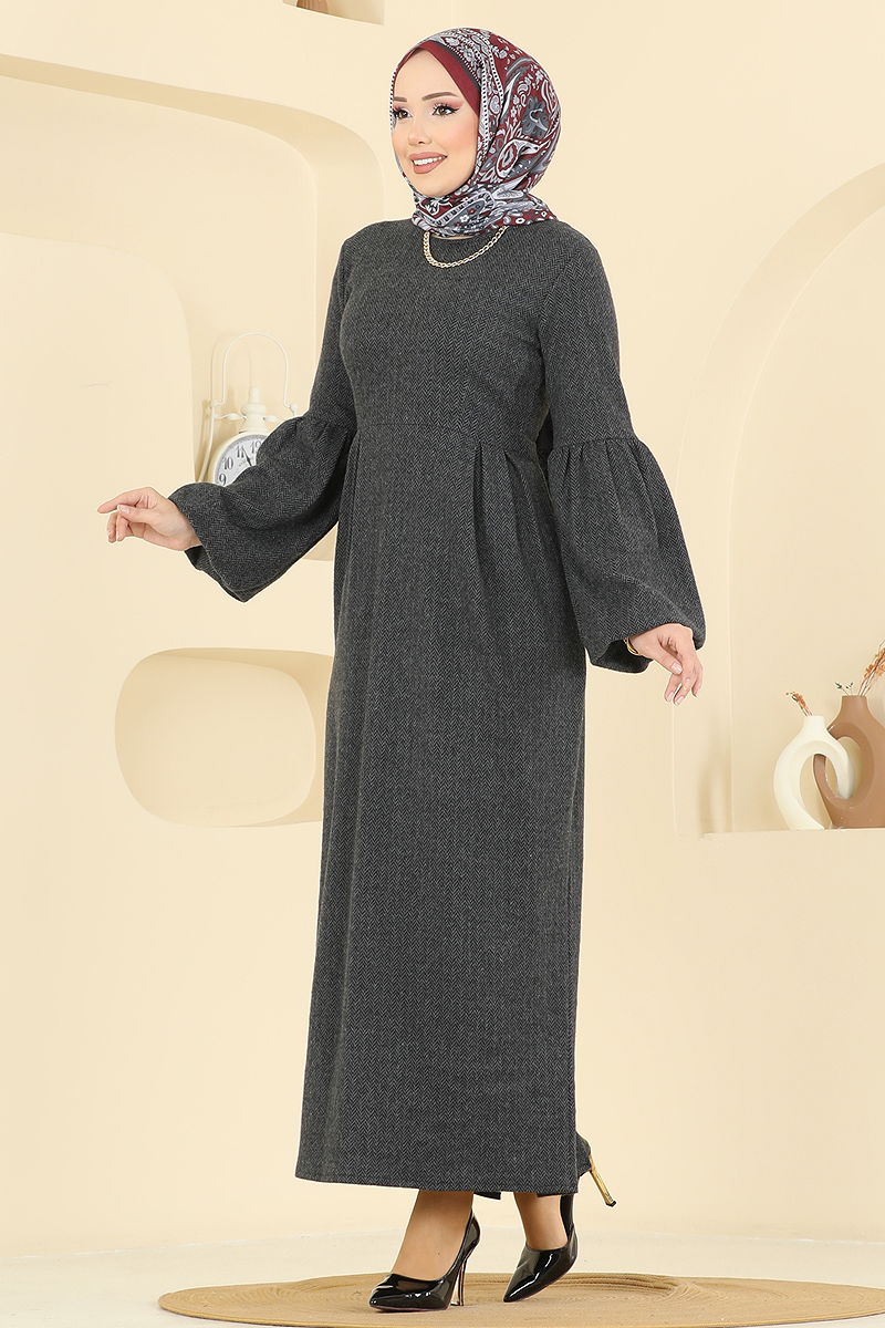 Beli Dikişli Balıksırtı Elbise 24085UKBK1160 Antrasit