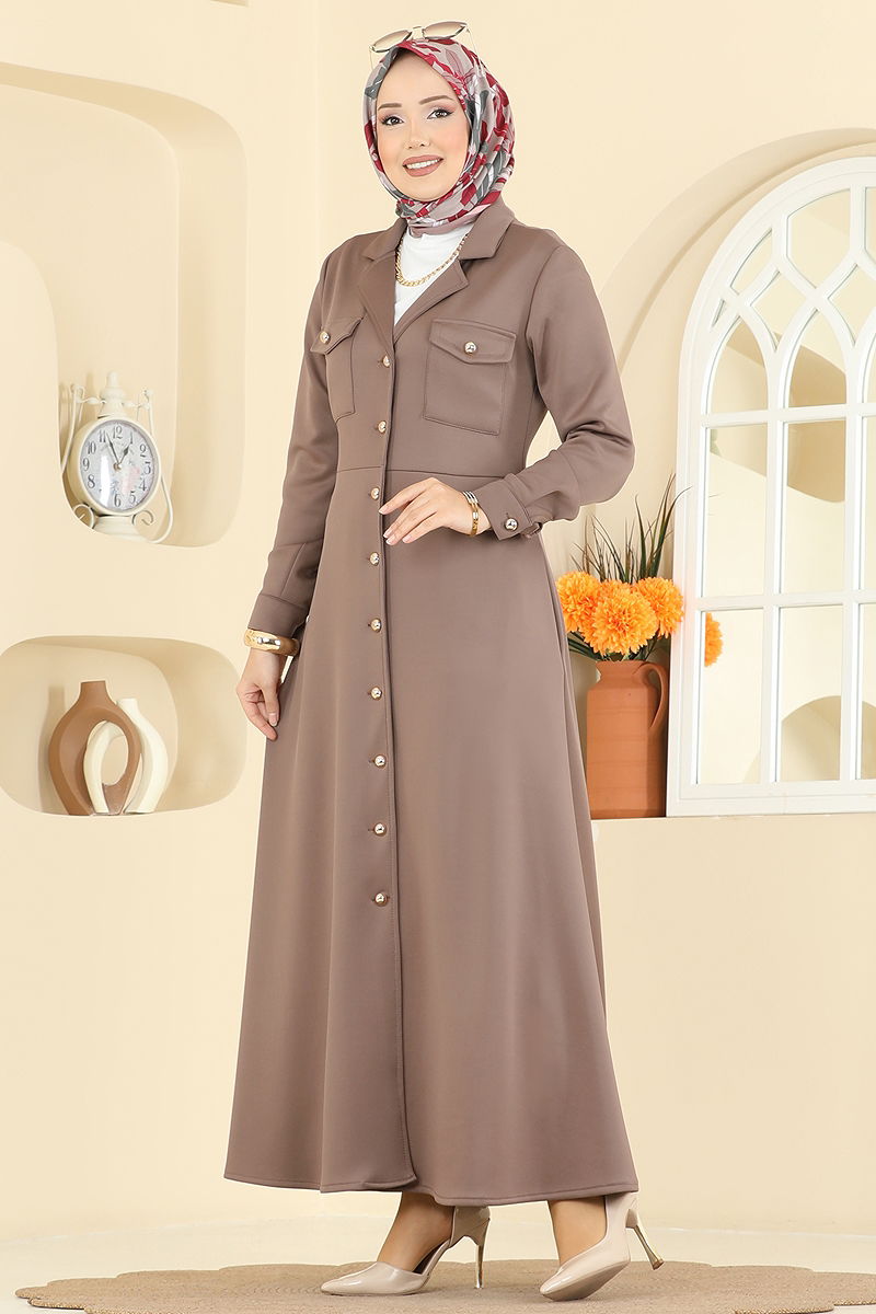 Beli Dikişli Scuba Elbise, her mevsim rahatlıkla kullanabileceğiniz tesettür ürünüdür. Hassas 30 derecede yıkanabilir özelliği ile bakımı kolaydır. Kruvaze yaka ve önü düğmeli tasarımı şıklığına şıklık katar. Astarsız oluşu, dikişli beli ve aktif göğüs cebi ile fonksiyonel ve rahat bir kullanım sunar. Manşetlerdeki aktif düğmeler ise tasarıma modern bir dokunuş yapar.