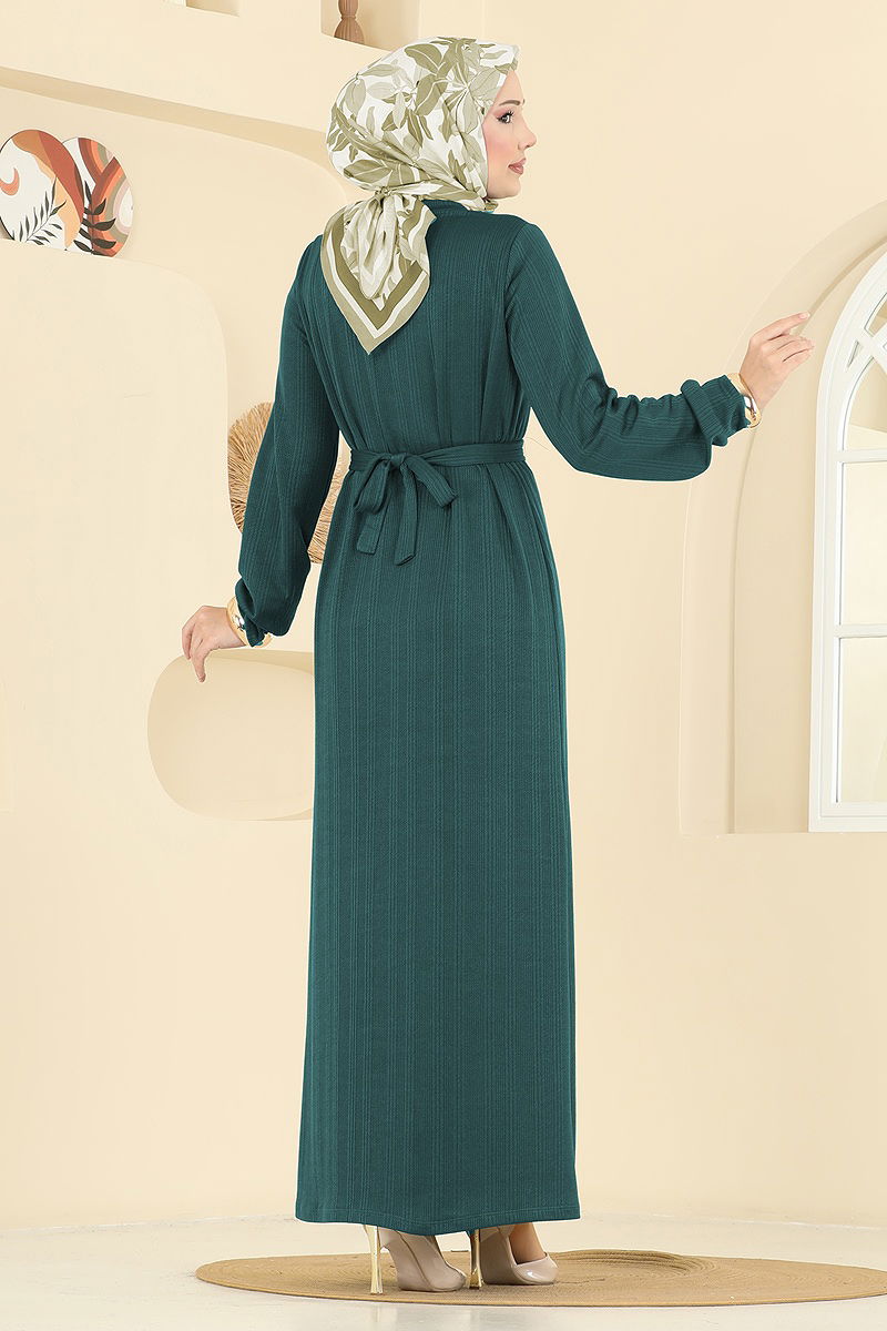 Beli Kemerli Burgu Elbise 8020UZ662 Zümrüt