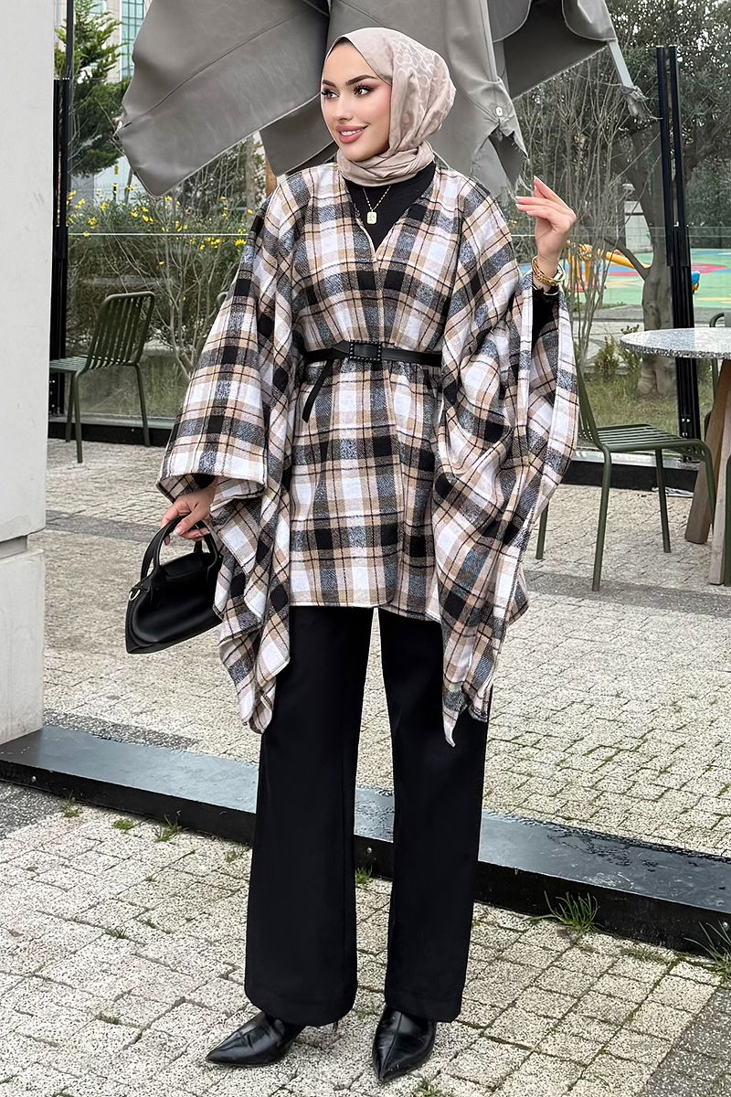 Bel Kemerli Ekose Panço bu sonbahar ve kış sezonunun en şık tesettür parçalarından biridir. Rahat ve pratik kullanımı ile ön plana çıkan bu panço, 36'dan 48 bedene kadar uyumludur. Herhangi bir astar içermeyen bu ekose kumaş ürün, beli kemerli tasarımıyla da dikkat çeker. Kemer, pançonun her iki ucuna sabitlenerek dalgalanmanın önüne geçer ve zevkinize göre kullanmanız için tasarlanmıştır. 30 derecede hassas yıkama ile temizlenmesi önerilir.