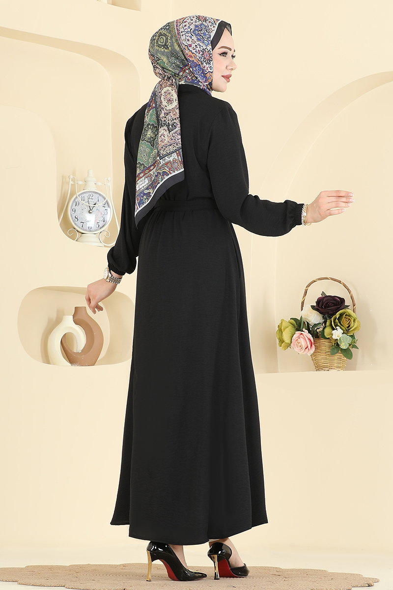 Beli Kuşaklı Aerobin Ferace Siyah