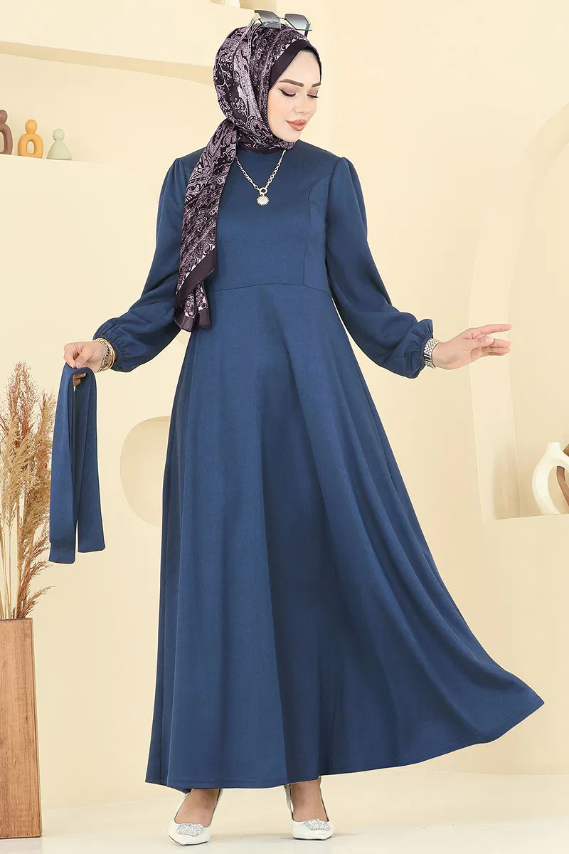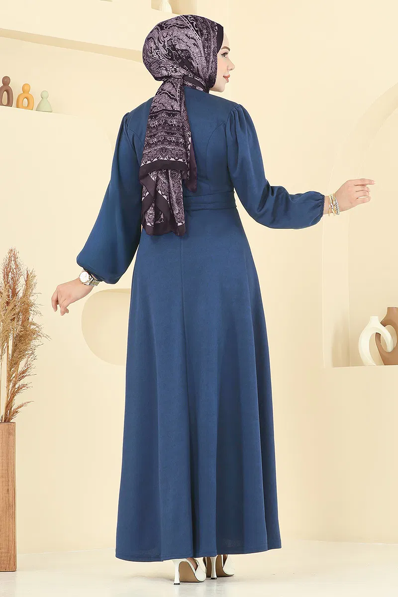 Beli Kuşaklı Elbise Açık İndigo
