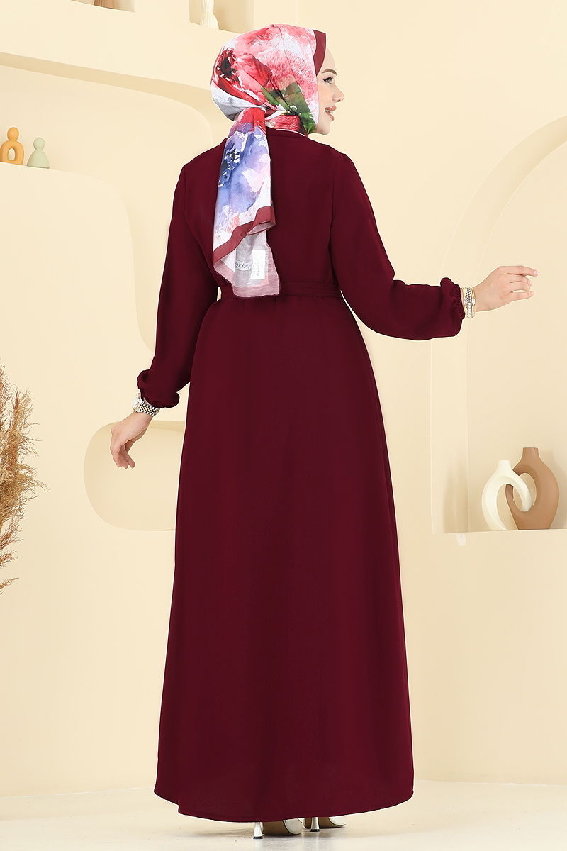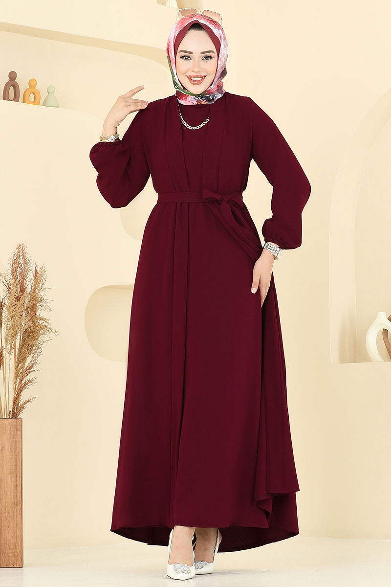 Beli Kuşaklı Elbise Takım Bordo