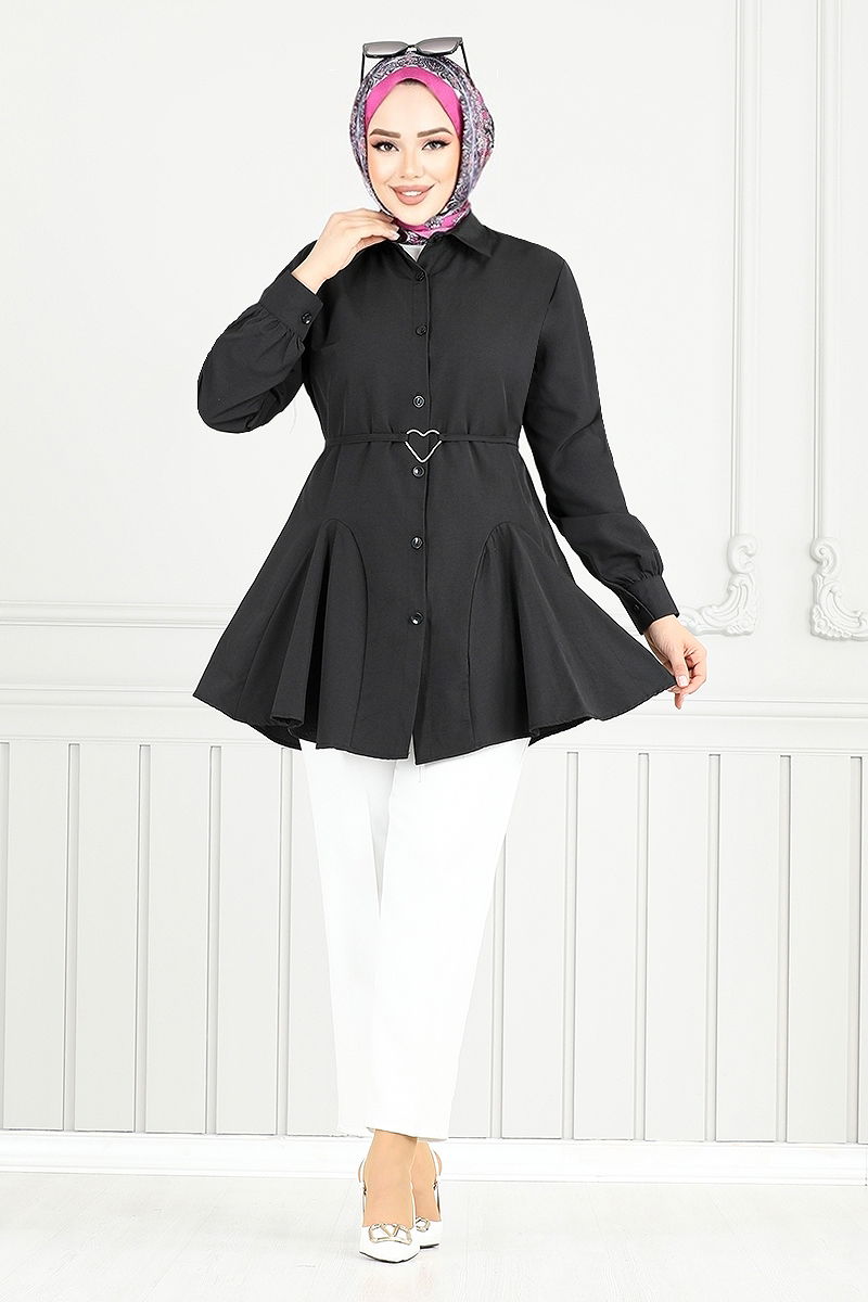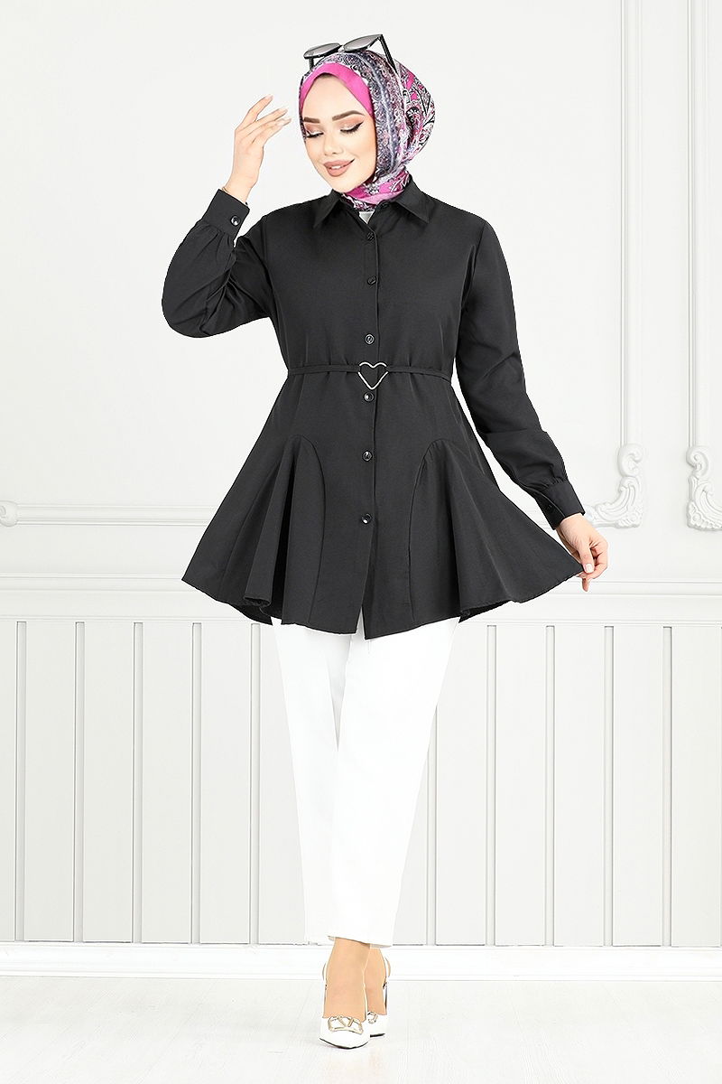 Beli Kuşaklı Gömlek Siyah
