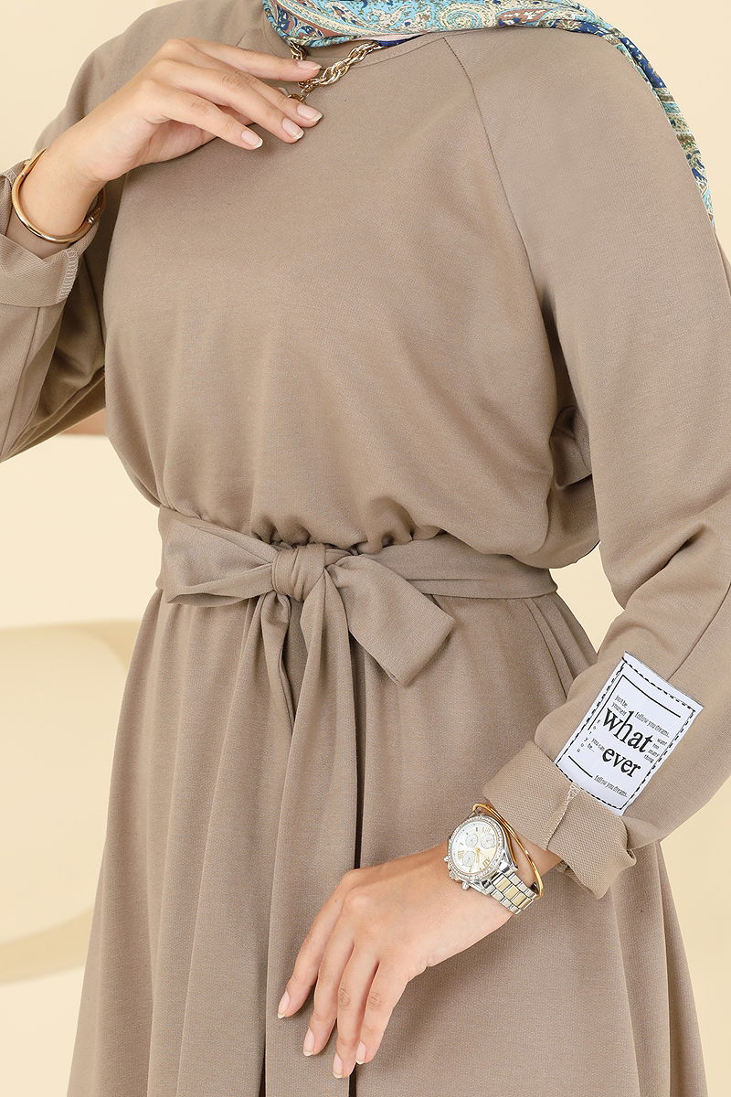 Beli Kuşaklı İki İp Elbise PL2828 Koyu Vizyon