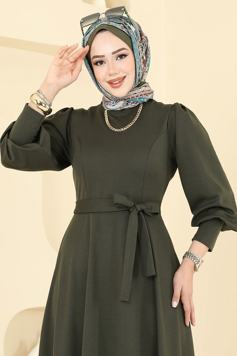 Zarif tasarımı ve konforlu yapısı ile dört mevsim giyilebilen Beli Kuşaklı Krep Elbise, tesettür giyimde şıklığı ve rahatlığı bir arada sunuyor. Özel krep kumaşı sayesinde hafif ve nefes alabilen bu elbise, 30 derecede hassas yıkama imkanı ile uzun ömürlü kullanım sunar. Hakim yaka ve sırttan fermuar detayı ile pratik bir kullanım sağlarken, dikiş detayları ile belinizi zarif bir şekilde vurgular. Ürüne dahil edilen ve iki ucu dikilmiş kuşak, isteğe bağlı çıkarılabilir ve sizi günün her anında şık tutar.