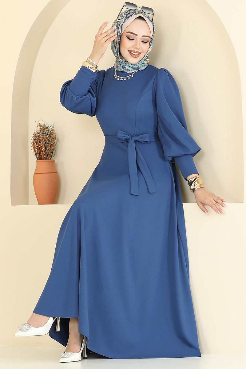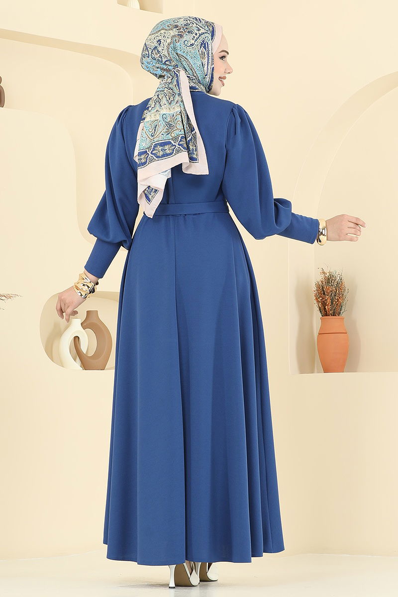 المنتج لديه ياقة بيضوية. غير مبطنة. المنتج به سحاب في جزء من الخلف. المنتج يحتوي على حزام خصر مُخاط. الحزام متضمن، ،يمكن استخدامها حسب الرغبة قد يكون هناك اختلاف في الدرجة اللونية في المنتج بسبب التقاط الصور الفوتوغرافية.