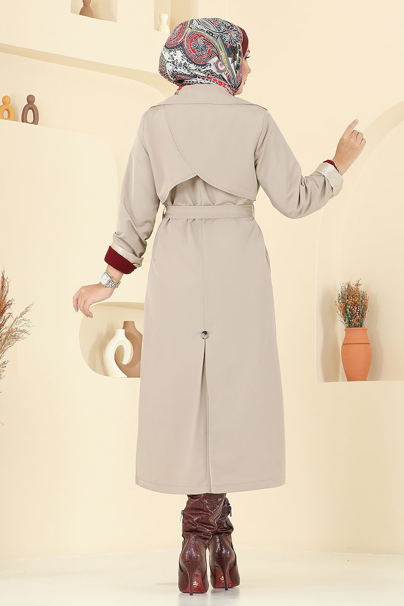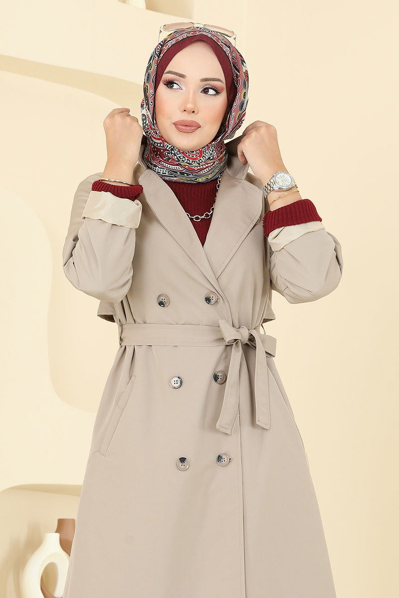 Beli Kuşaklı Trençkot Taş