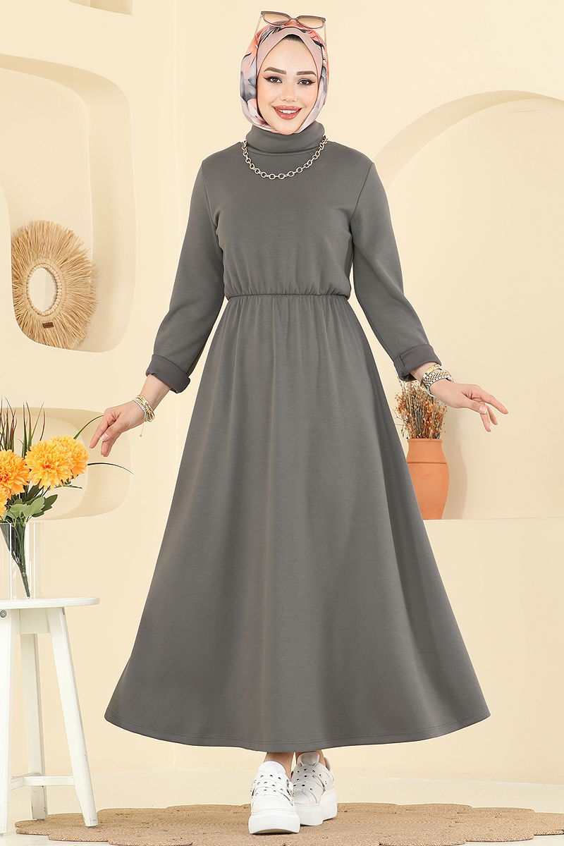 Beli Lastikli Modal Elbise Antrasit