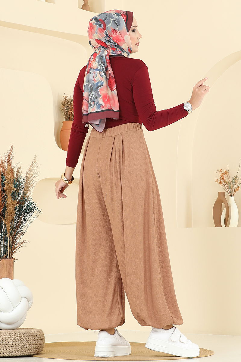 Beli Lastikli Şalvar Pantolon Bisküvi