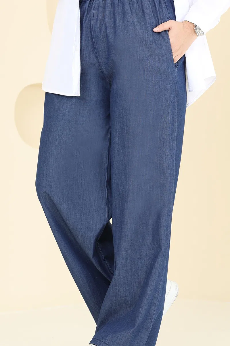 Beli Lastikli Tensel Kot Pantolon, rahatlığı ve şıklığı bir arada sunar. Dört mevsim boyunca giyilebilir özelliğiyle ön plana çıkan bu tesettür pantolon, tensel kot kumaşın konforunu birleştirir. Esnek beli sayesinde gün boyu rahat bir kullanım sağlar. Cep detayı ise fonksiyonellik katar.