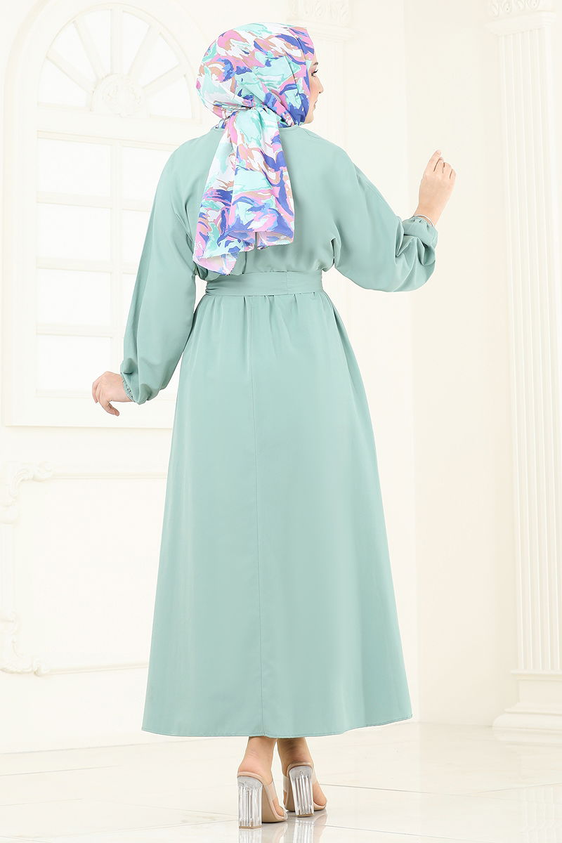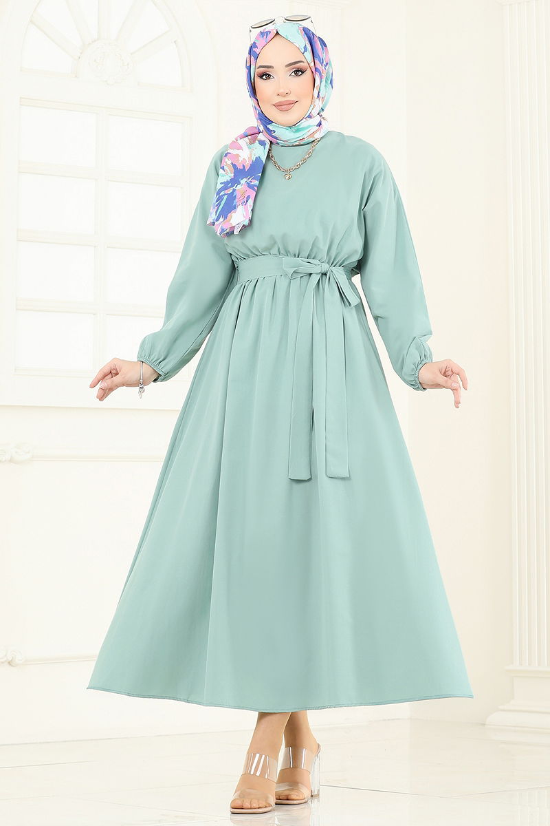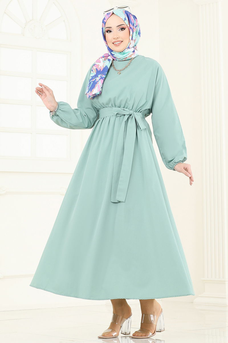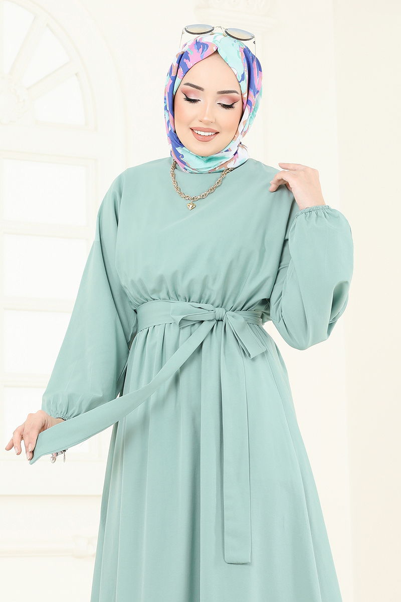 Ürün Özelliği : Yeni sezon tesettür moda ürünüdür. Sırttan kullanılabilir bir düğmesi bulunmaktadır. Ürün Bisiklet yakadır. Astarsızdır. Kemer ürüne dahildir, isteğe bağlı kullanılmayabilir. Aksesuarlar ürüne dahil değildir. Beli ve manşeti lastiklidir. Konsept fotoğraf çekimlerinden dolayı üründe ton farklılığı olabilir.