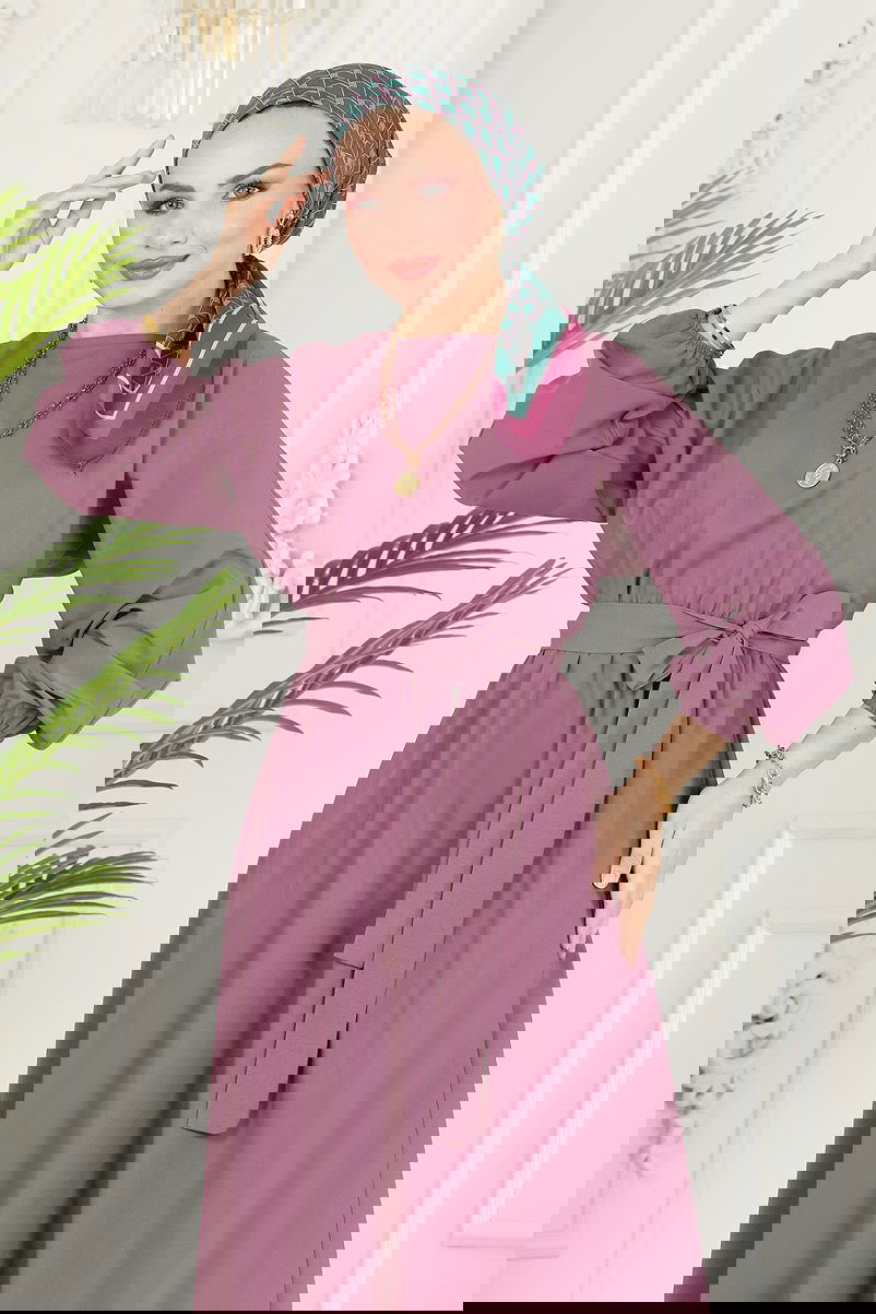Fabric Property: Made of tericoton fabric.It is the fabric that can be used in Spring,Summer season.Product Feature :It is a new season hijab style product. (Unlined.)It has a functional back button.Elastic waist.Belt is included, can be used optionally.Elastic cuff.There may be a tonal difference in the product color due to the concept shots.