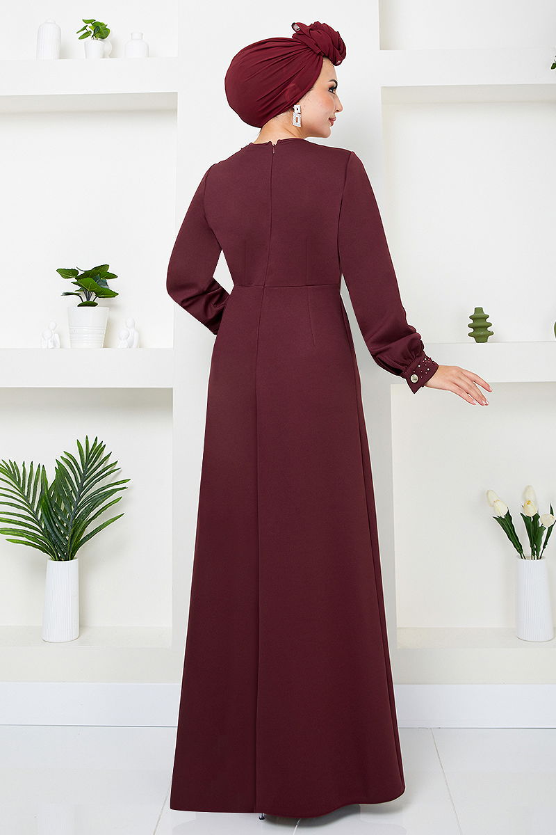Beli Taş İşlemeli Abiye 5027SL890-M Bordo
