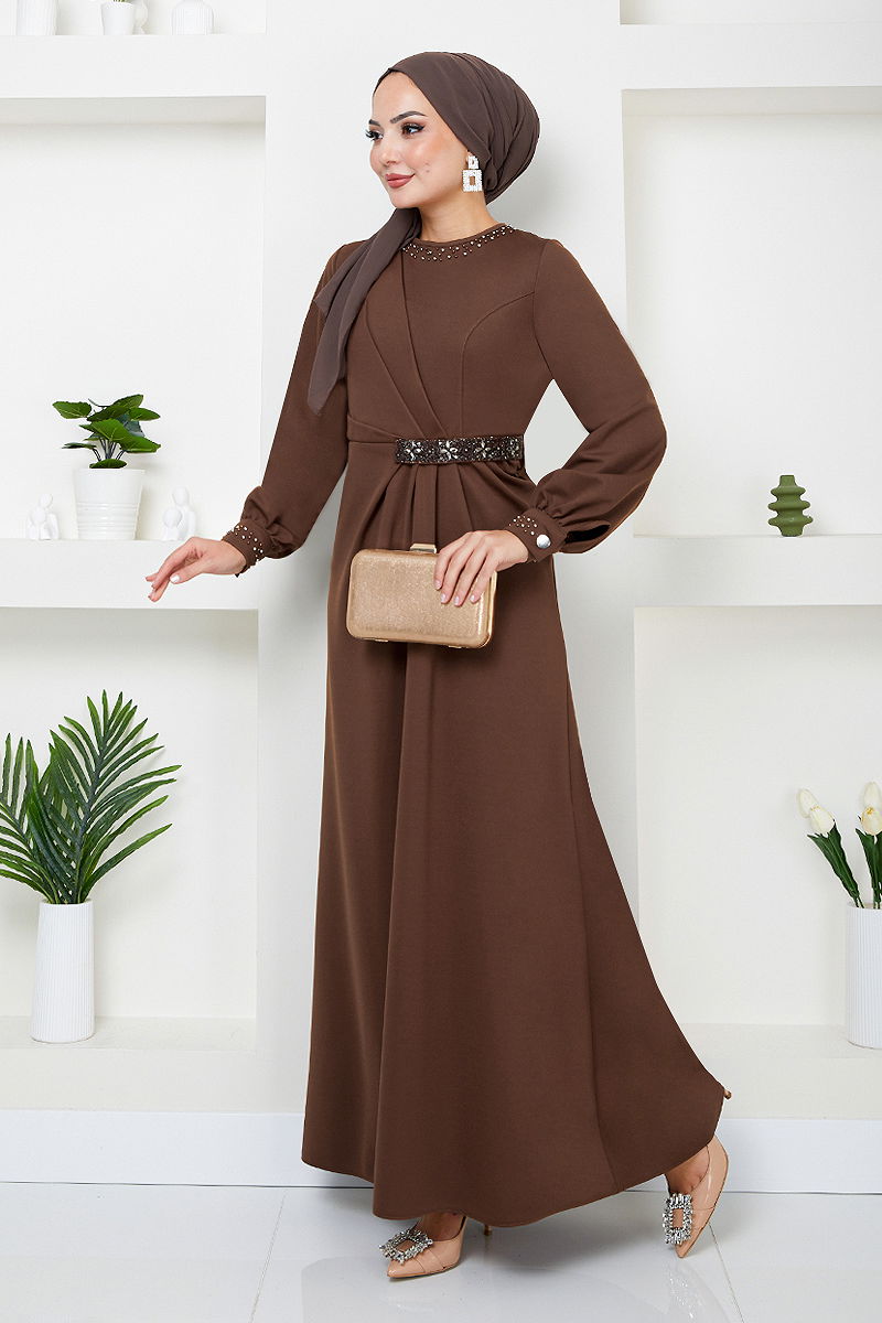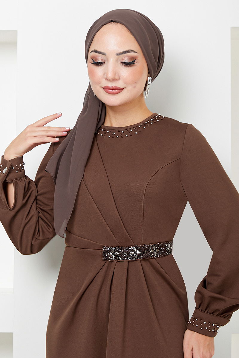 Beli Taş İşlemeli Abiye 5027SL890-M Kahve