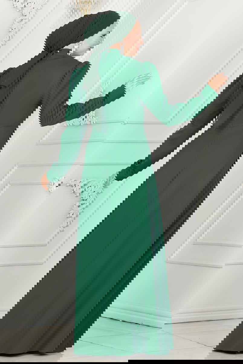Beli Taş İşlemeli Abiye Elbise 6883MDH809 Zümrüt