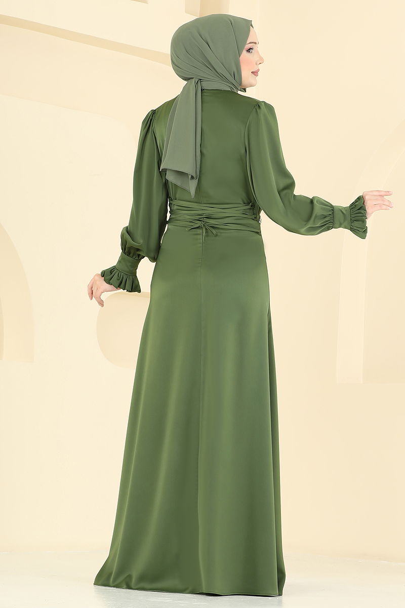 Beli Taşlı Saten Abiye 6247BSK463 Haki