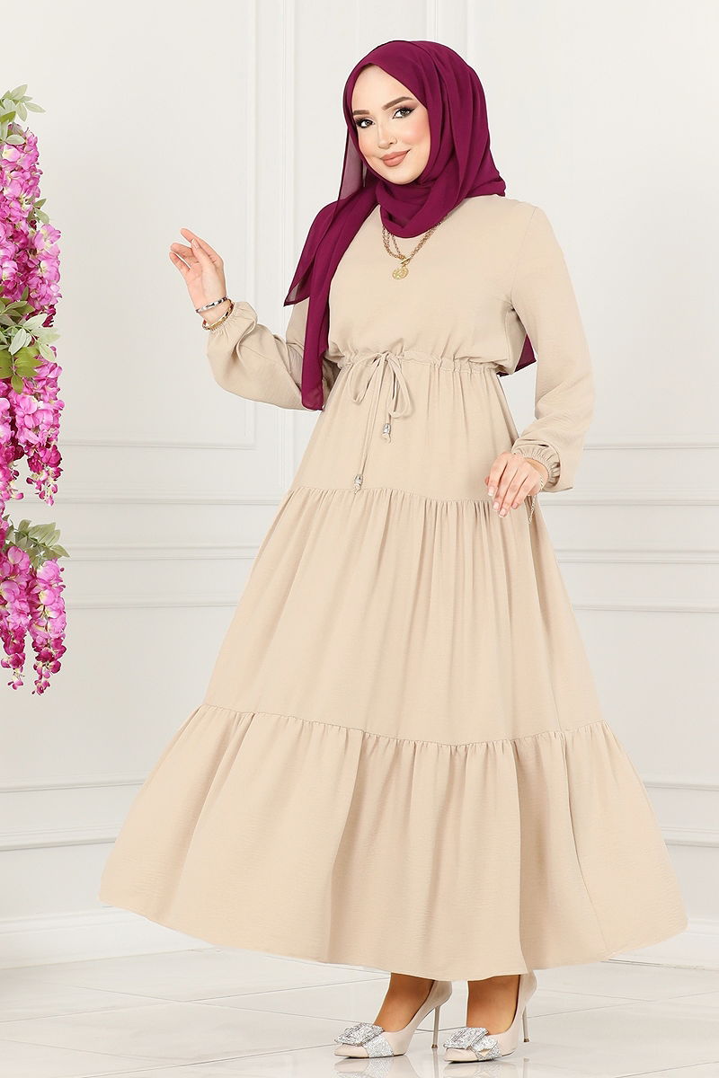 Ürün Özelliği : Yeni sezon tesettür moda ürünüdür. Sırttan kullanılabilir bir düğmesi bulunmaktadır. Beli bağcıklıdır. Ürün Bisiklet yakadır. Astarsızdır. Aksesuarlar ürüne dahil değildir. Manşet lastiklidir. Konsept fotoğraf çekimlerinden dolayı üründe ton farklılığı olabilir.