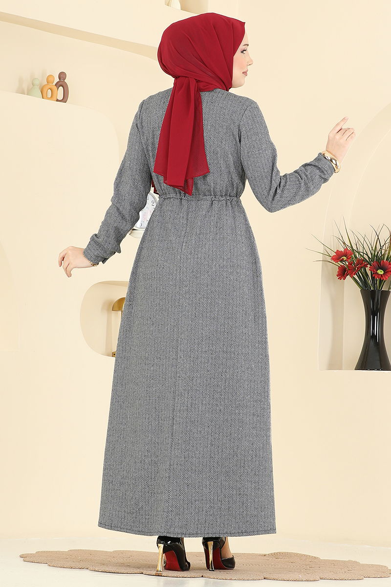 Beli Tünelli Balıksırtı Elbise 24090UKBK1160 Gri