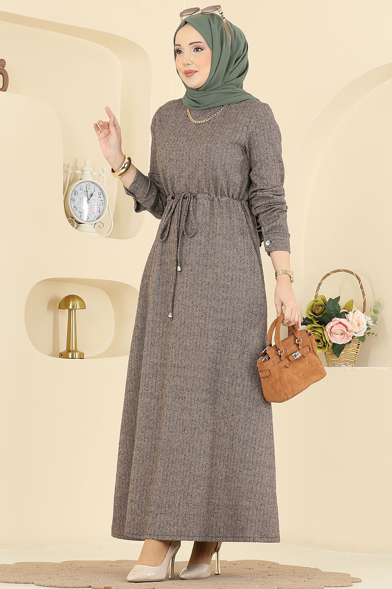 Beli Tünelli Balıksırtı Elbise 24090UKBK1160 Vizyon