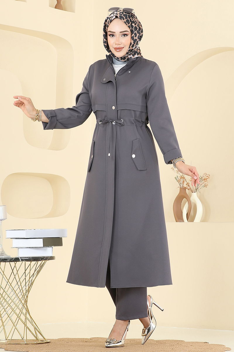 Ürün Özelliği : Yeni sezon tesettür moda ürünüdür. Beli bağcıklıdır. Ürün Hakim yakadır. Astarsızdır. Ürün Önden fermuarlıdır. Çıtçıt detayları aktiftir. Cep detayı aksesuardır. Pantolon beli lastiklidir. Konsept fotoğraf çekimlerinden dolayı üründe ton farklılığı olabilir.