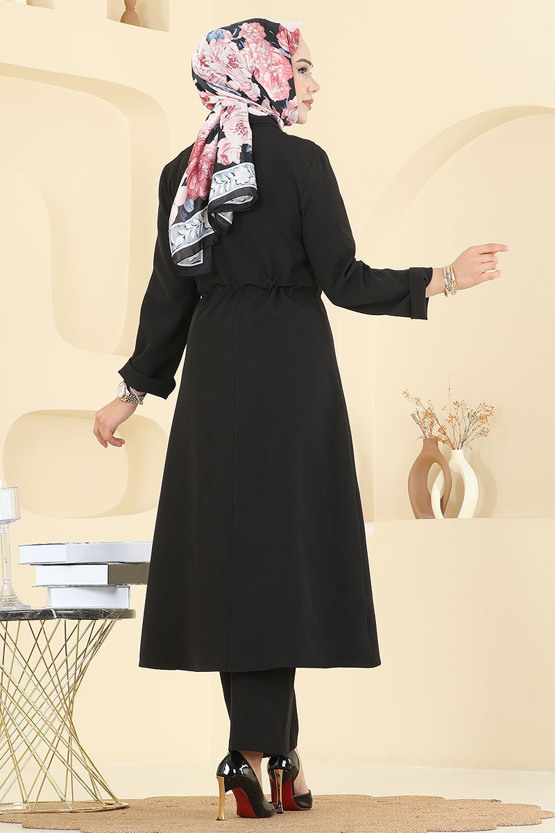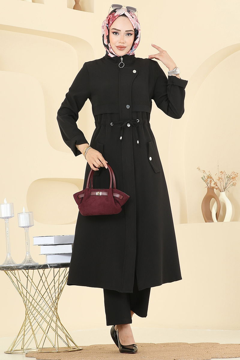 Ürün Özelliği : Yeni sezon tesettür moda ürünüdür. Beli bağcıklıdır. Ürün Hakim yakadır. Astarsızdır. Ürün Önden fermuarlıdır. Çıtçıt detayları aktiftir. Cep detayı aksesuardır. Pantolon beli lastiklidir. Konsept fotoğraf çekimlerinden dolayı üründe ton farklılığı olabilir.
