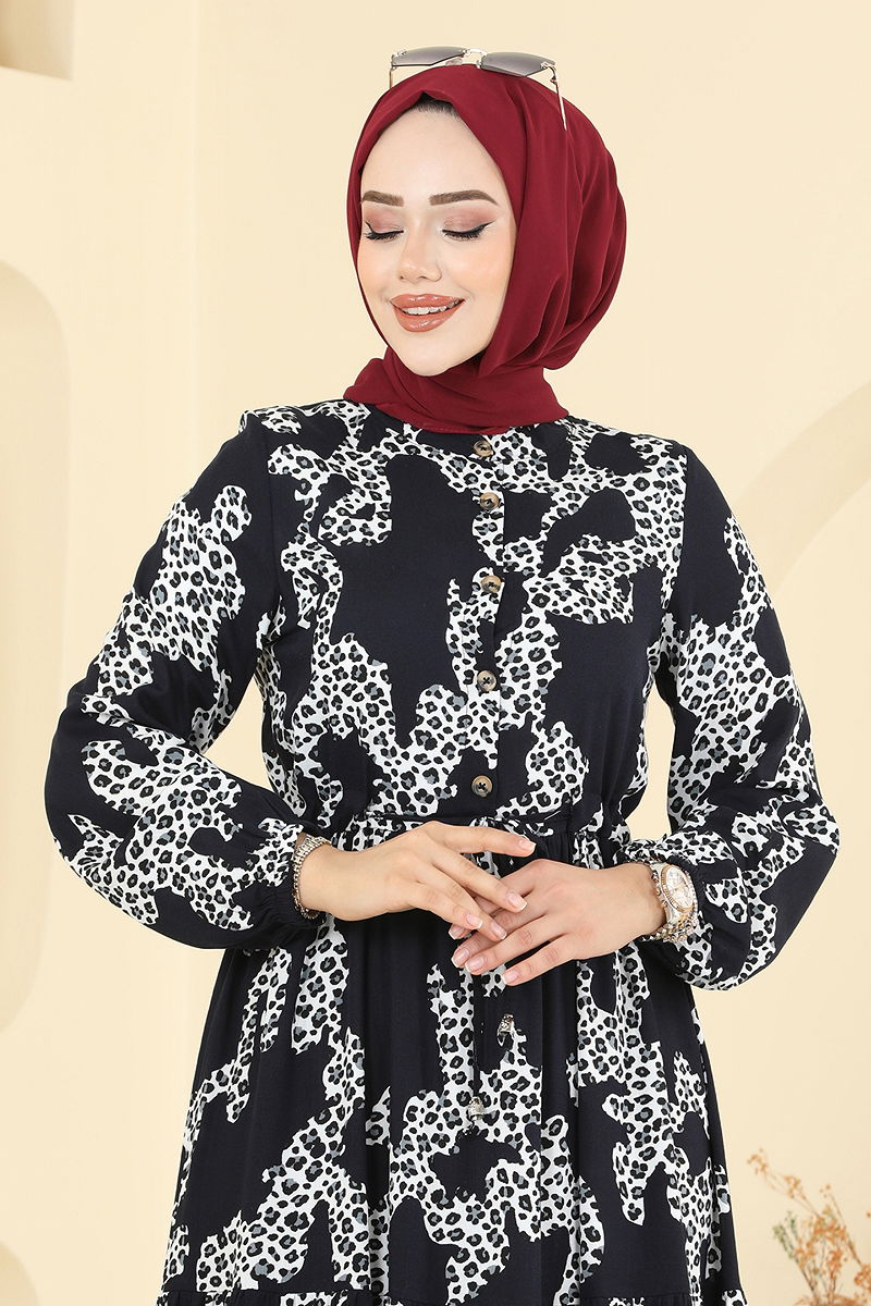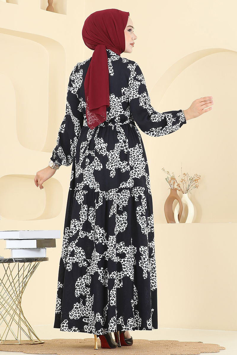 Beli Tünelli Desenli Elbise 7135ERK1158 Laci