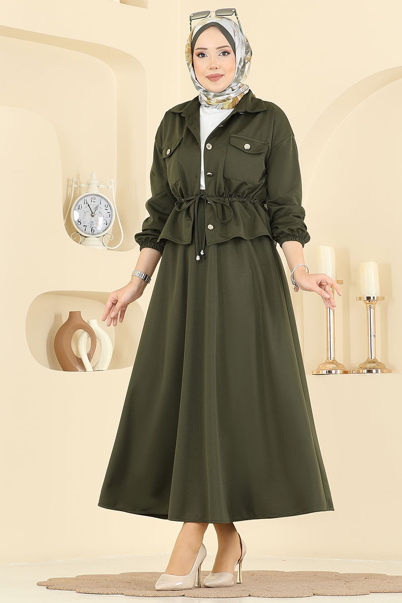 Ürün Özelliği : Yeni sezon tesettür moda ürünüdür. Beli bağcıklıdır. Ürün Gömlek yakadır. Ürün Önden düğmelidir. Astarsızdır. Göğüs cep aktiftir. Etek beli lastiklidir. Manşet lastiklidir.Konsept fotoğraf çekimlerinden dolayı üründe ton farklılığı olabilir.