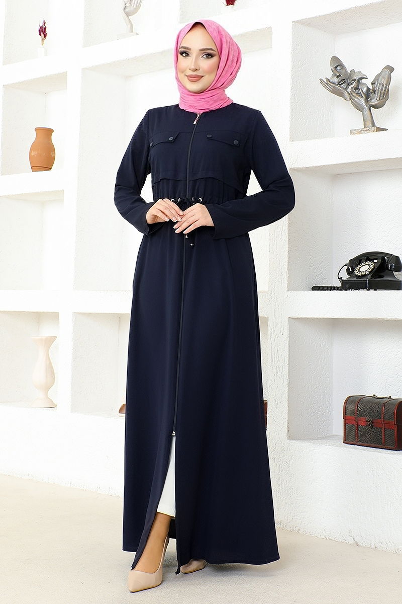 Waist Tunnel Abaya MSL3186 Navy Blue